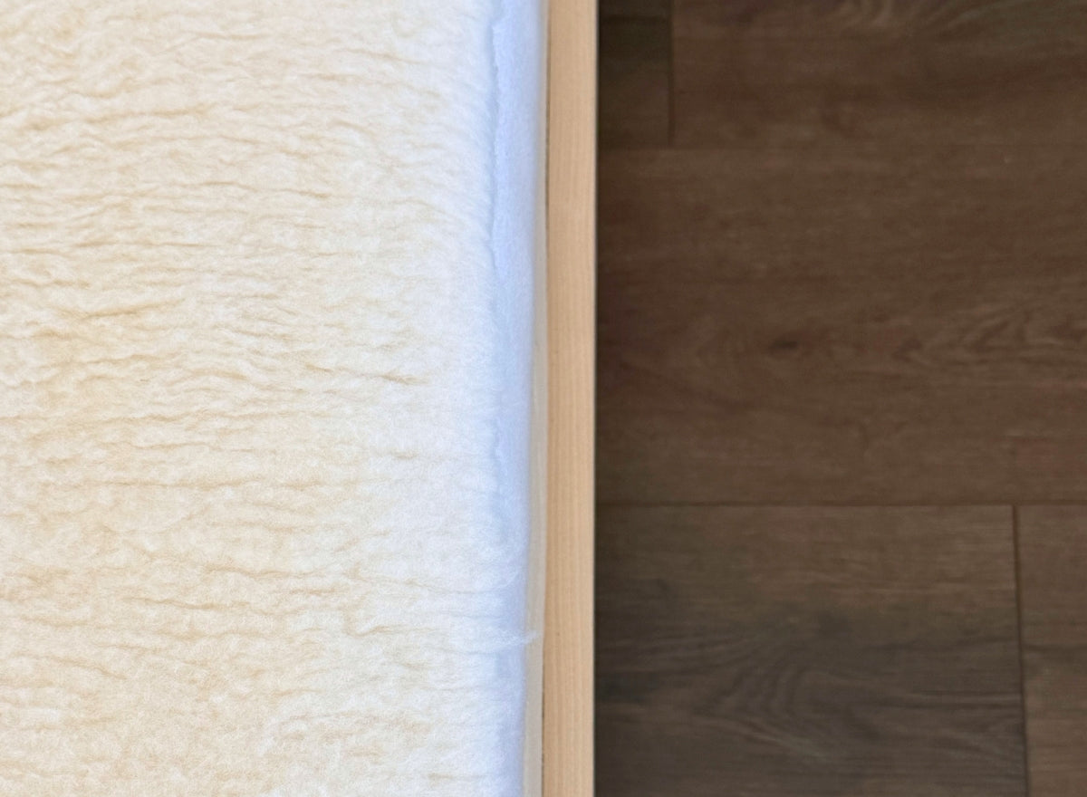 *Los tamaños Full, Queen y King se crean cosiendo a mano dos piezas de vellón. La línea de costura está en el reverso y no se nota en el lado del vellón.